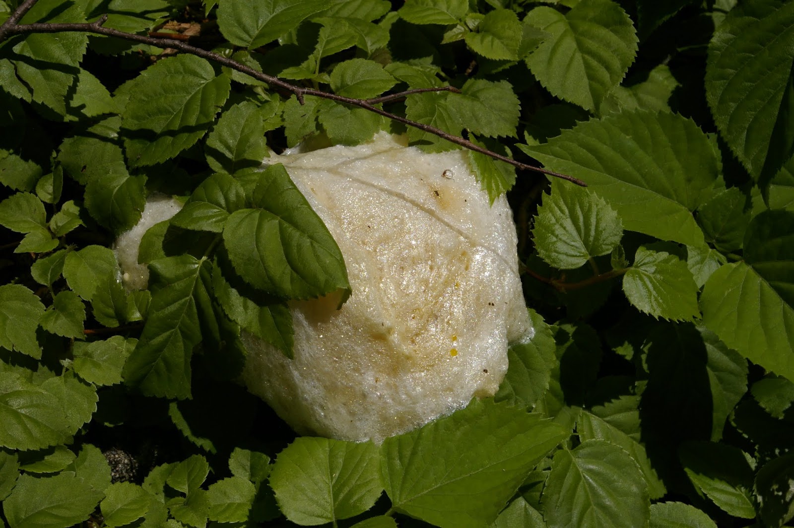 | 旧工事用車道の先でみつけたモリアオガエルの卵 |