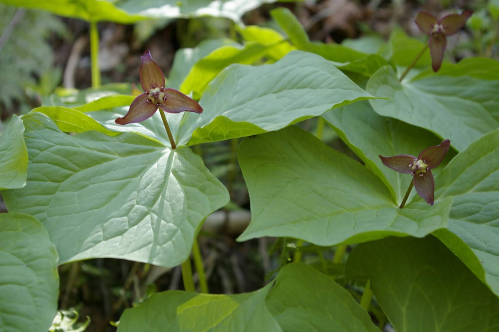 | たくさん一緒に咲いているのは珍しいそうです エンレイソウ |