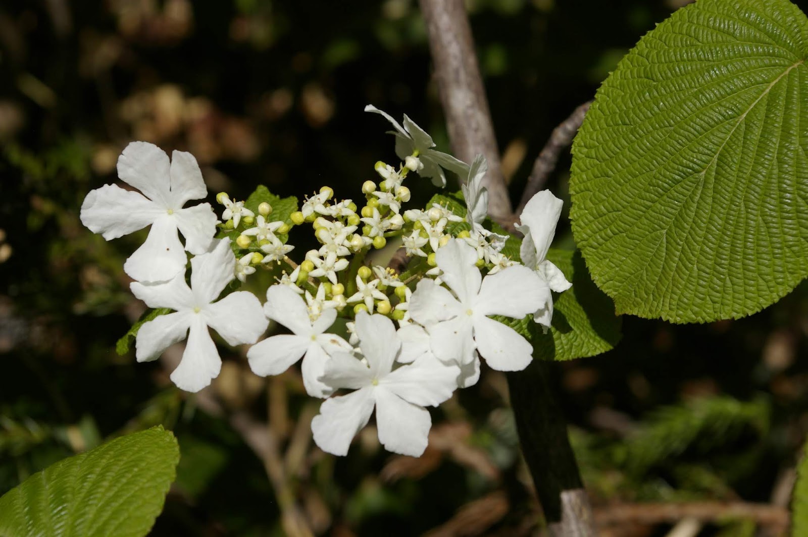 | 葉っぱが亀の甲羅のようだからその名前がついた オオカメノキの花 |
