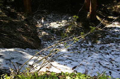 美女平駅からすぐの遊歩道には、沢の一部以外、ほとんど雪は残っていませんでした。