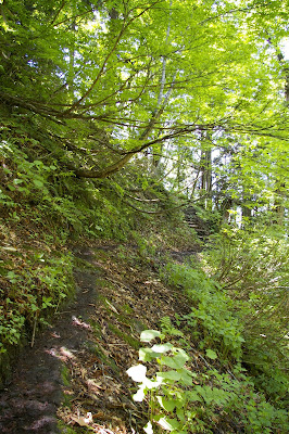 | 旧道を入った先で見た鮮やかな ムラサキヤシオツツジ |